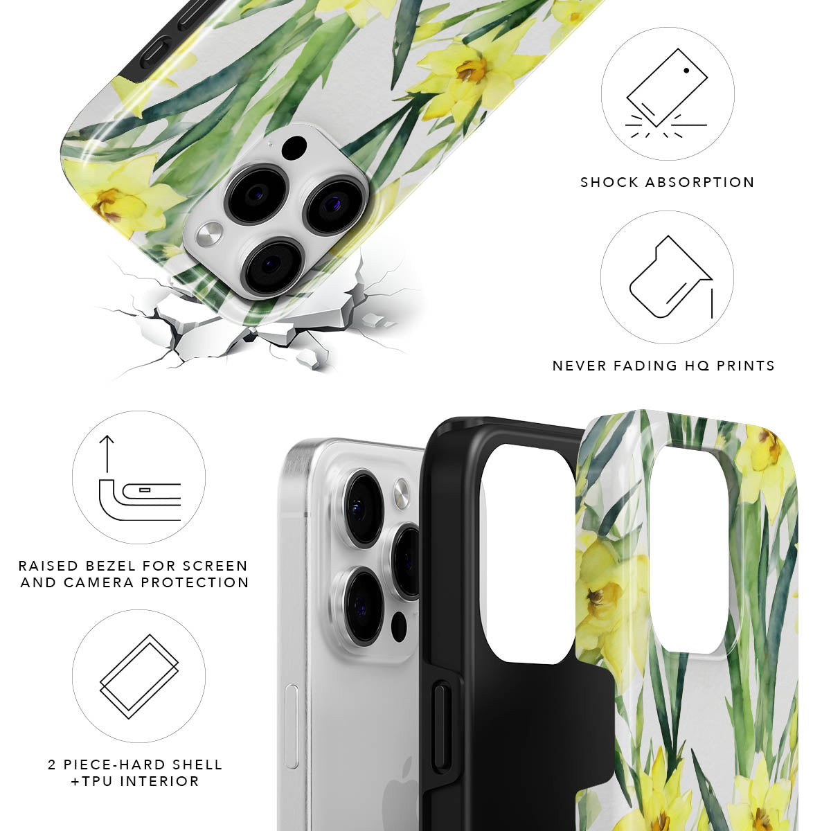 Nuestro diseño de doble capa ofrece una protección de primera calidad, mientras que su superficie es un lienzo para impresiones de alta calidad. Ligero pero resistente, protege tu dispositivo contra los imprevistos de la vida.