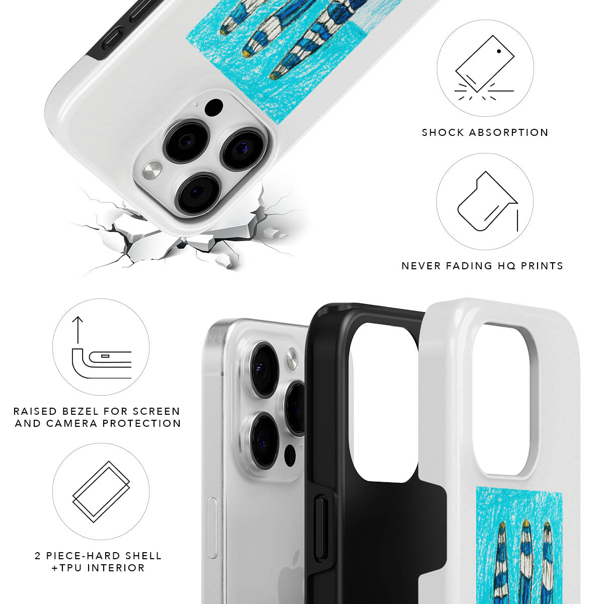 Our double-layered design offers top-notch protection, while its surface is a canvas for high-quality prints. Lightweight yet durable, it guards your device against life’s unexpected mishaps.